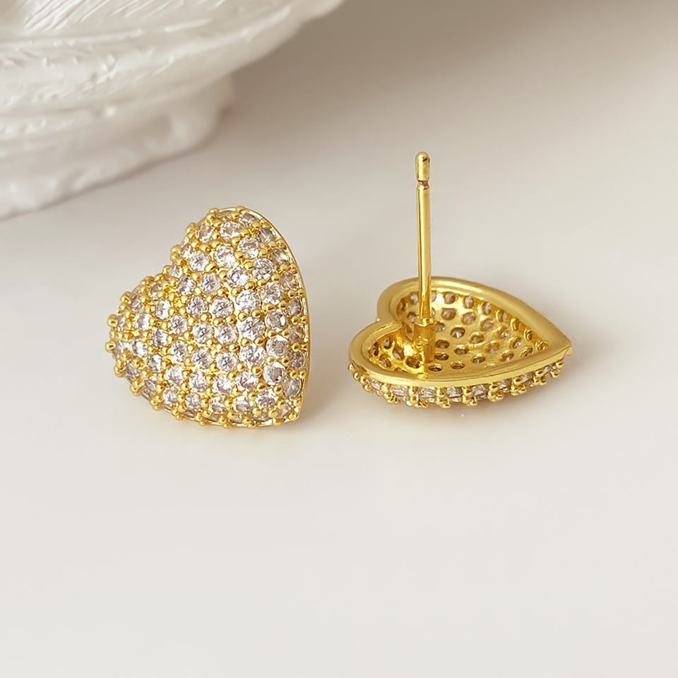 Fashion Valentines Gifts Women's Heart Jewelry Earrings Full Set Zircon Gold Plated Trendy Heart Stud Earrings