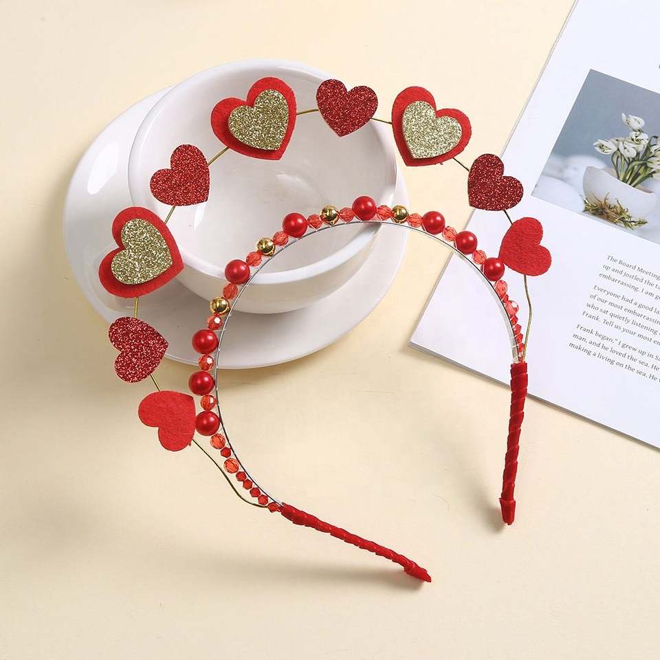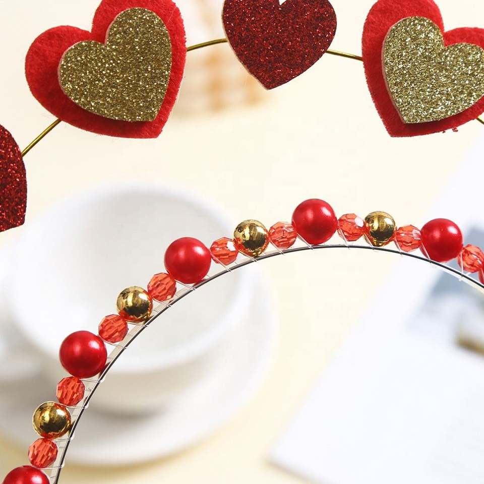 Valentines Heart Headband Glitter Hair Band Love Crown Red Girls Hair Accessories for Valentine Day Decoration Party Supplies
