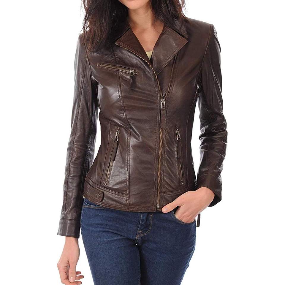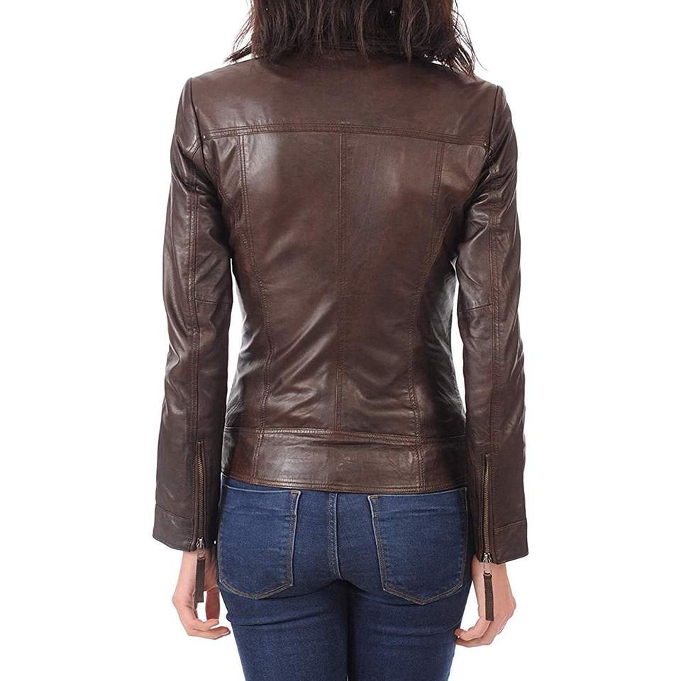 Valentino Women's Genuine Leather Biker Jacket Sheepskin Full Sleeve Vintage Style Moto Coat X-Large