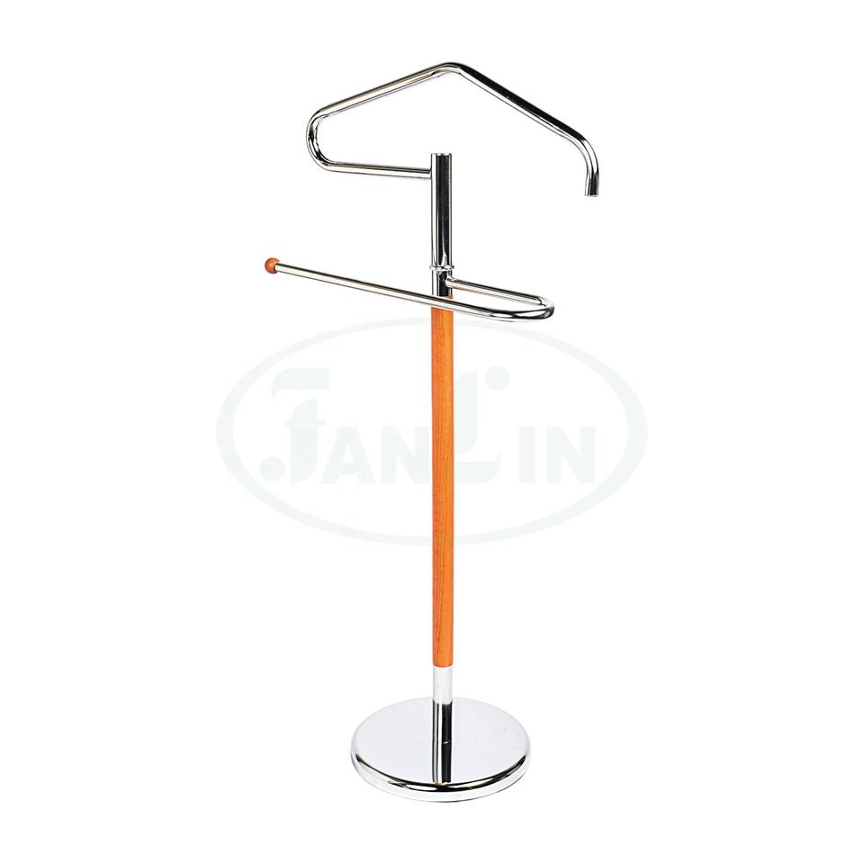 Modern Valet Suit Rack Stand Wooden Pole Chromed Metal Tube Hanger Clothing Rack Home Furniture Bedroom Organizer Space Saving