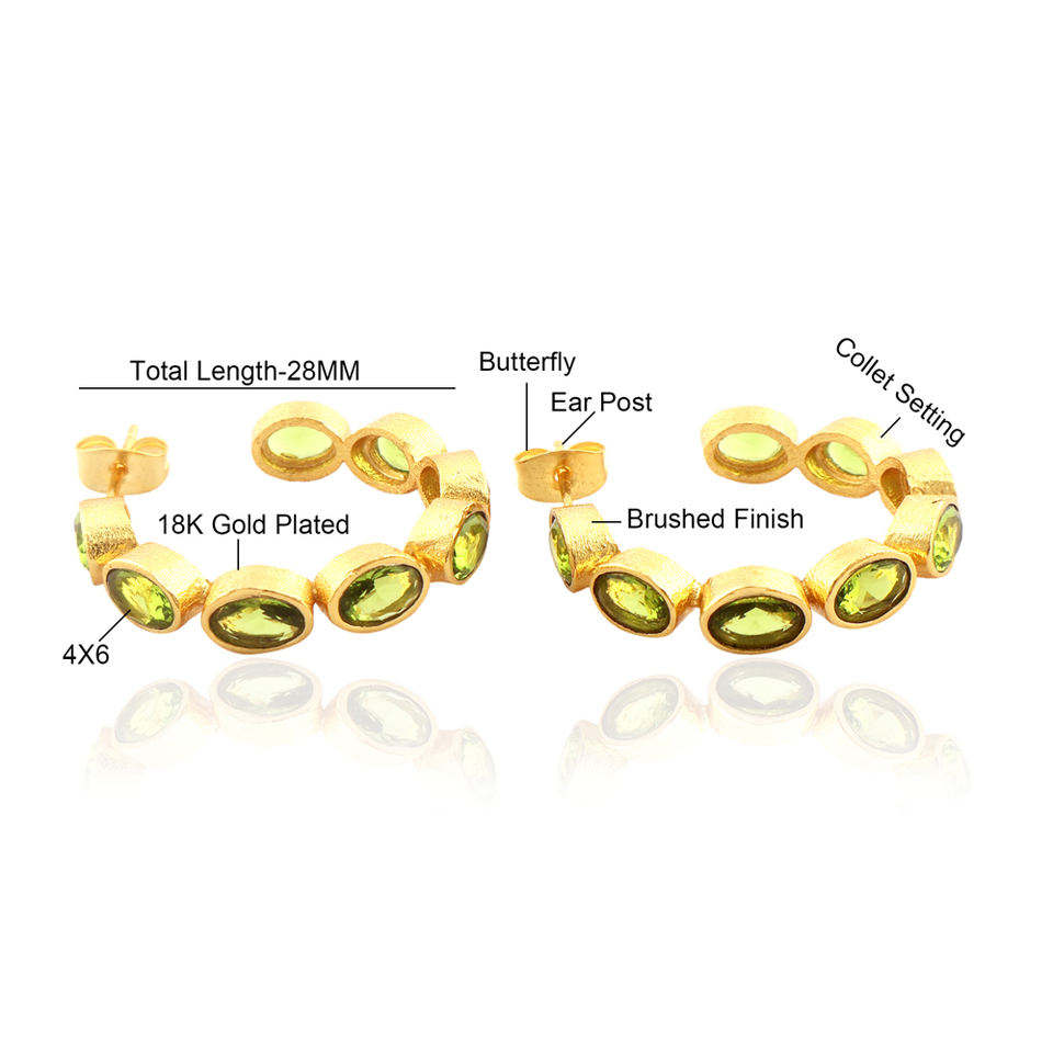 Valuable Fashion Jewelry Hoop Dainty Peridot Quartz Oval Stone Half Open Hoops Gold Plated Brushed Finish Collet Setting Hoops