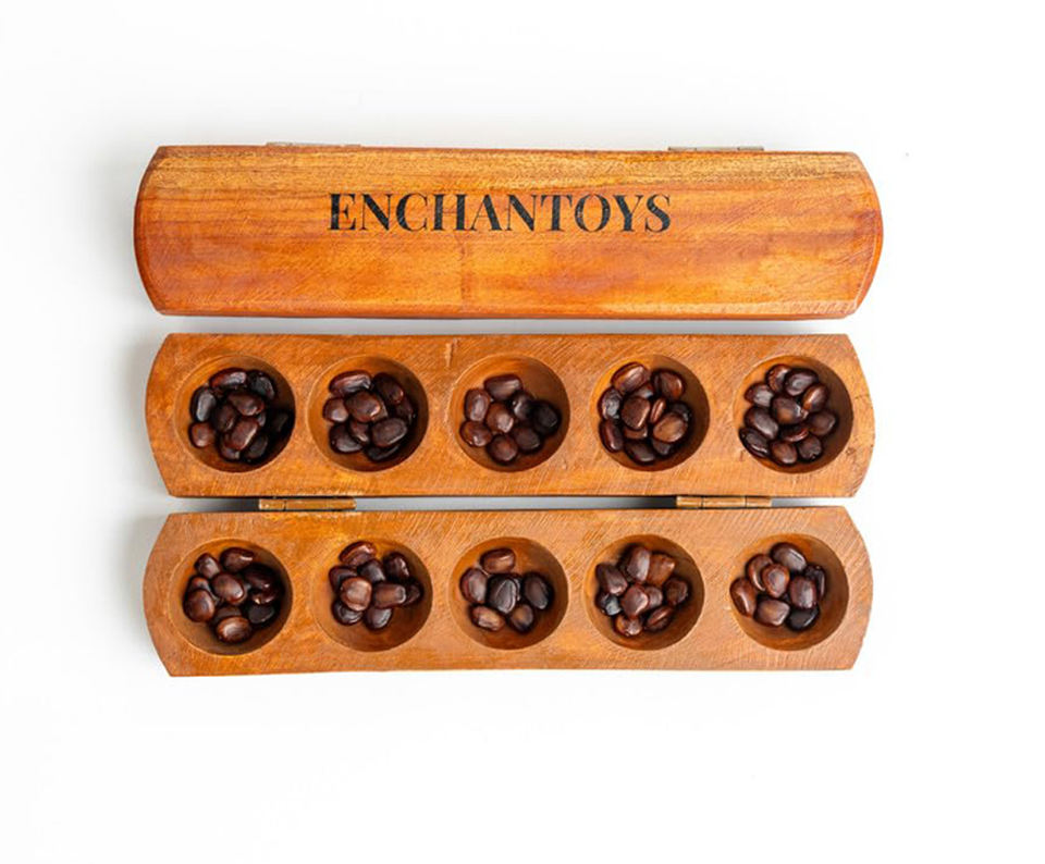 Vamanaguntalu 5-Pit Traditional Indian Educational Toy Handcrafted Classic Wooden Mancala Game for All Ages Indoor Family Fun