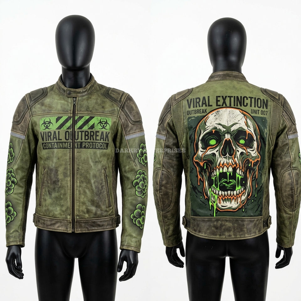 Vampire Hunter Racing Leather Jacket Grey Distressed Biker Coat Wooden Stake Graphic Men Garlic Print Streetwear Custom Out