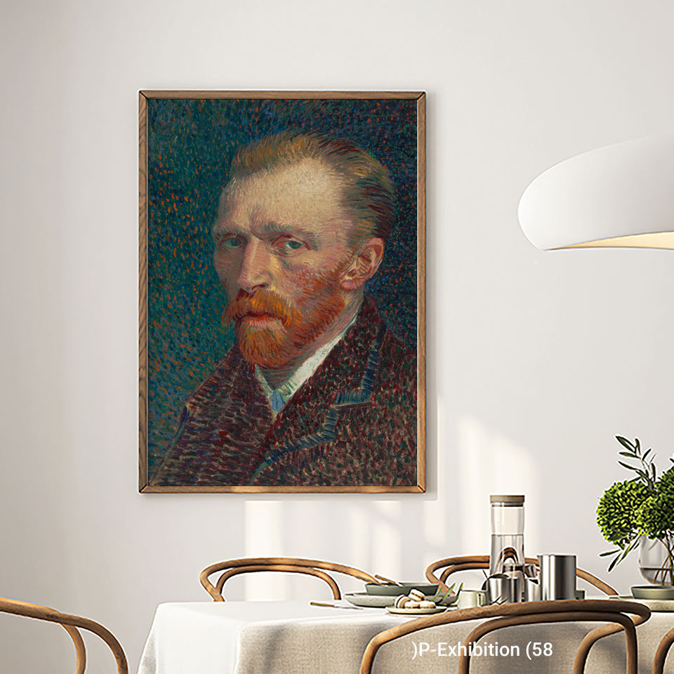 Van Gogh Orange Beard Self Portrait Canvas Art Print Exhibition Poster Intense Modern Wood Frame Wall Decor Dramatic Home