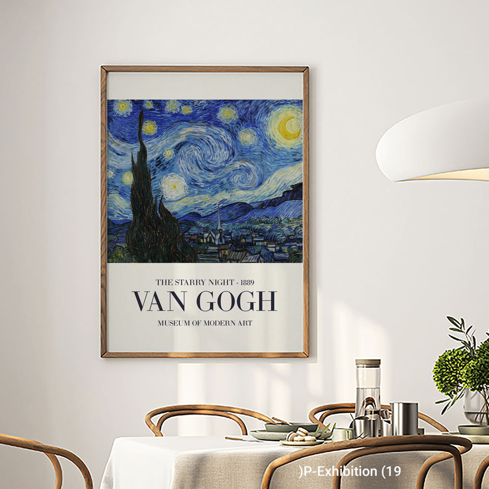 Van Gogh Starry Night Canvas Art Print Exhibition Poster Iconic Masterpiece Wall Decor Living Room Stylish Modern Interiors Wood