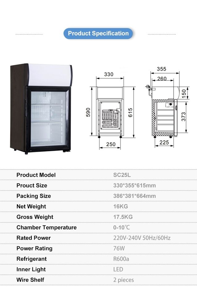 Vanace Compact Refrigerator 25 Liter Customization Compressor Commercial Mini Fridge With Light Box