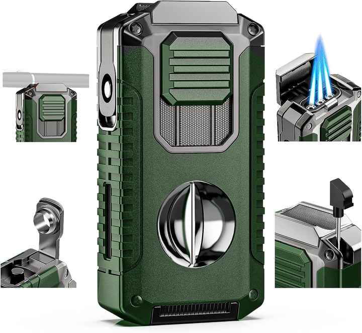 Vanace Hot-Selling Premium Three Fire Jet Flame Cigar Lighter With V-Shaped Cigar Cutter Portable Multi-Functional Lighter