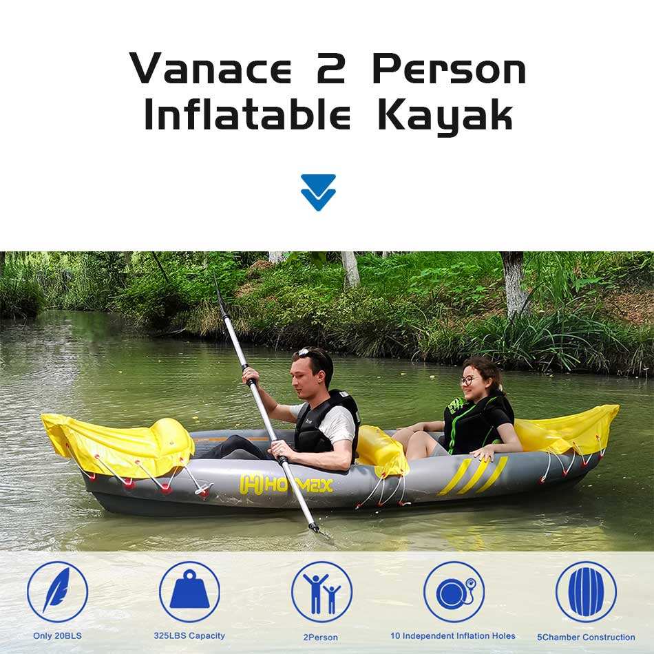 Vanace Ready Stock Canoe Kayak Yellow 2-Person Inflatable Kayak Set