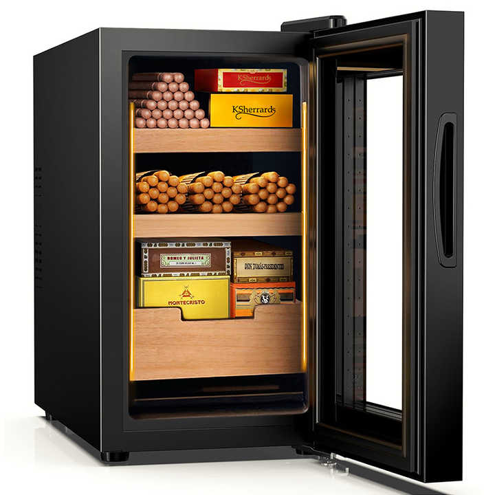 Vanace Spanish32 Electric Cigar Humidor Cabinet Modern Lacquer Design 32 Stainless Steel Cedar Lined Drawers Digital Hygrometer