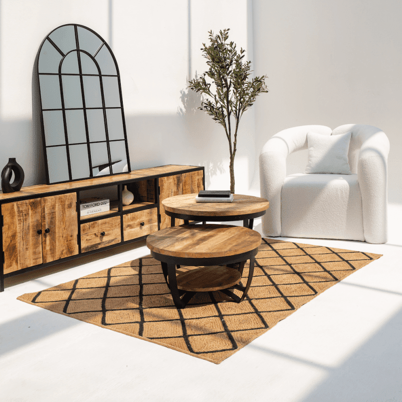 Vandana Astra Aston Round Industrial Wooden Nesting Coffee Table Set for Modern Homes