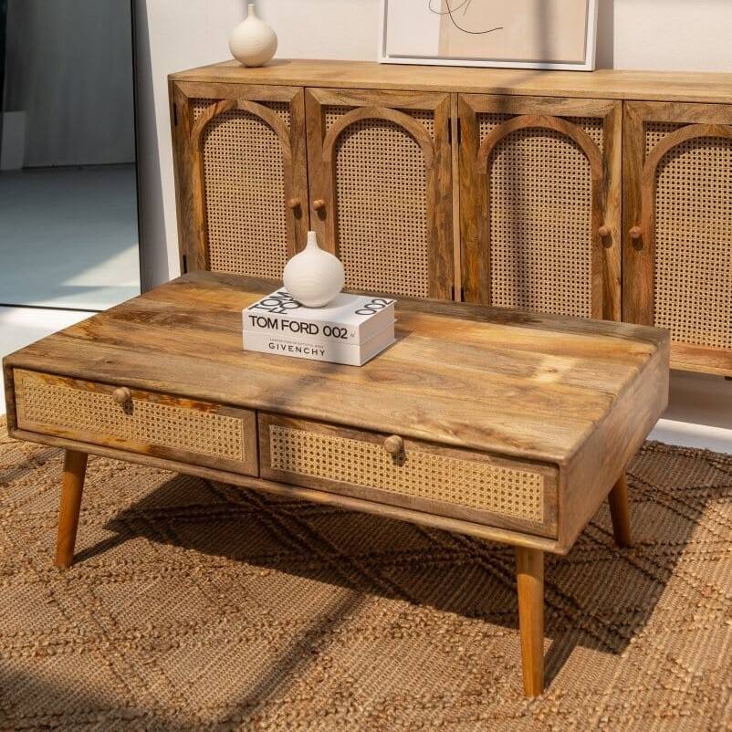 Vandana Astra Elara Rattan-Drawer Wooden Coffee Table for Modern Living Room Interiors