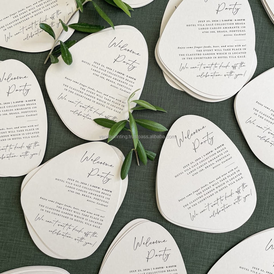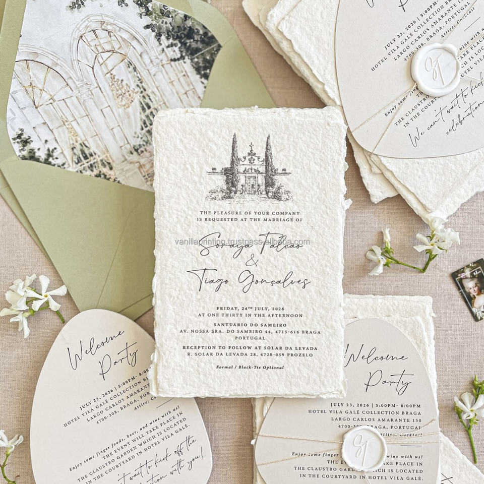 Vanilla Printing Handmade Deckled Edge Paper Custom Logo Letterpress Printed Elegant RSVP & Menu Invitation Cards