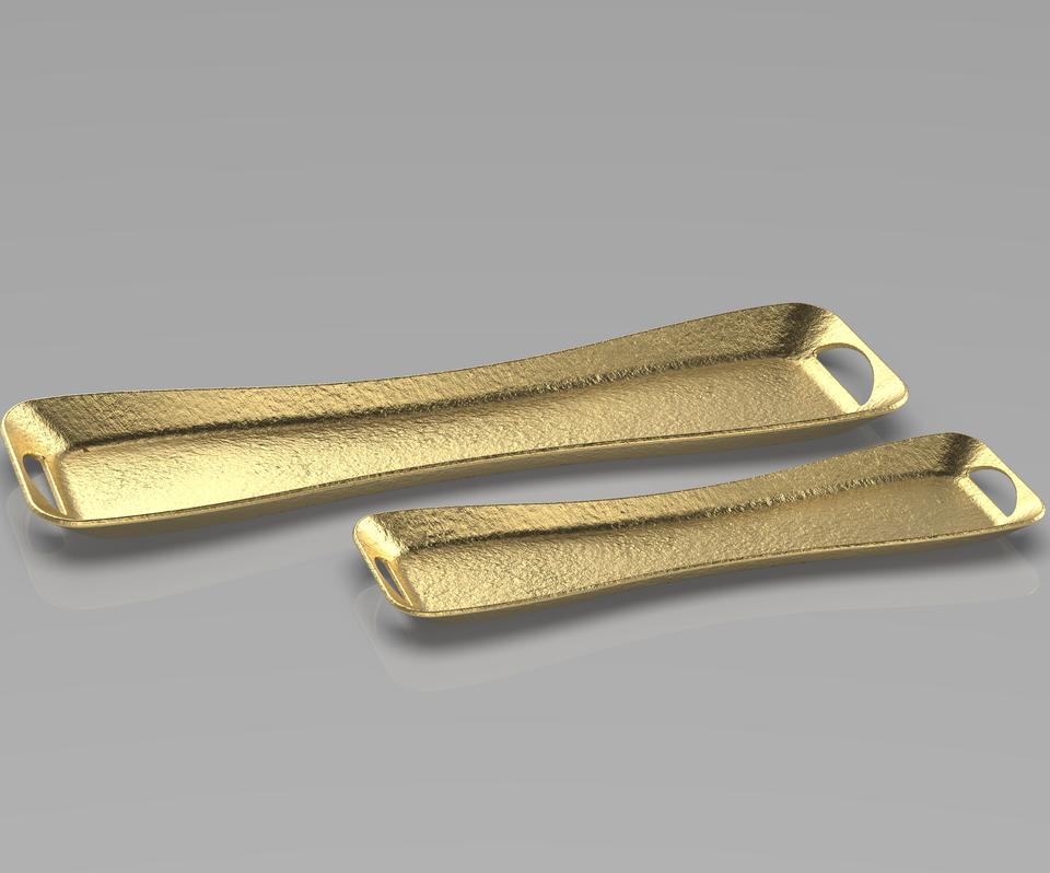 Vantage Set of 2 Boat Shape Metal Tray Modern Household Multifunctional Tray Serving Tray for Home Decoration and Kitchen Usage