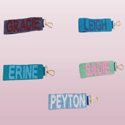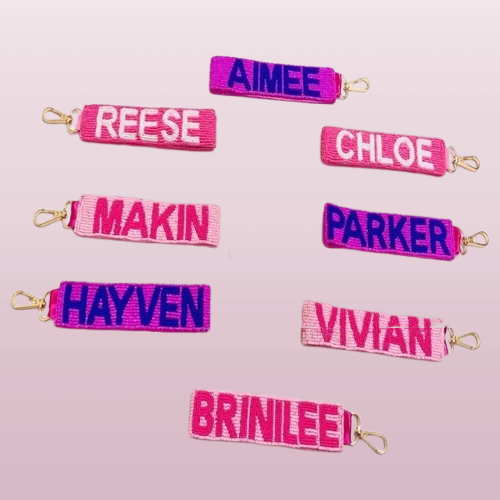 Variety Color Collection Beaded Name Keychain Wristlet Personalized Letter Key Holder Handmade Boutique Fashion Keychains Style