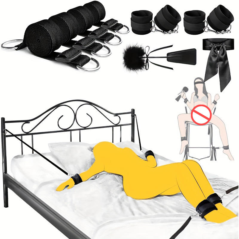 Variety SM Waterproof Bondage Bed Restraints Open Leg Straps Set with Handcuffs Spanking Paddle Restraint Kit Sex Toy Couple