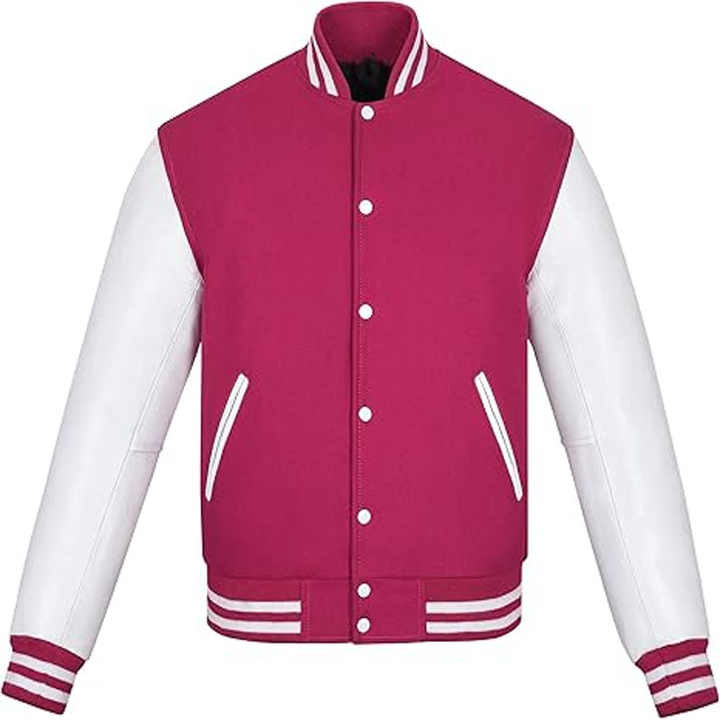 Varsity Jacket Custom Red Wool Body and White Leather Sleeve Baseball Letterman Jackets