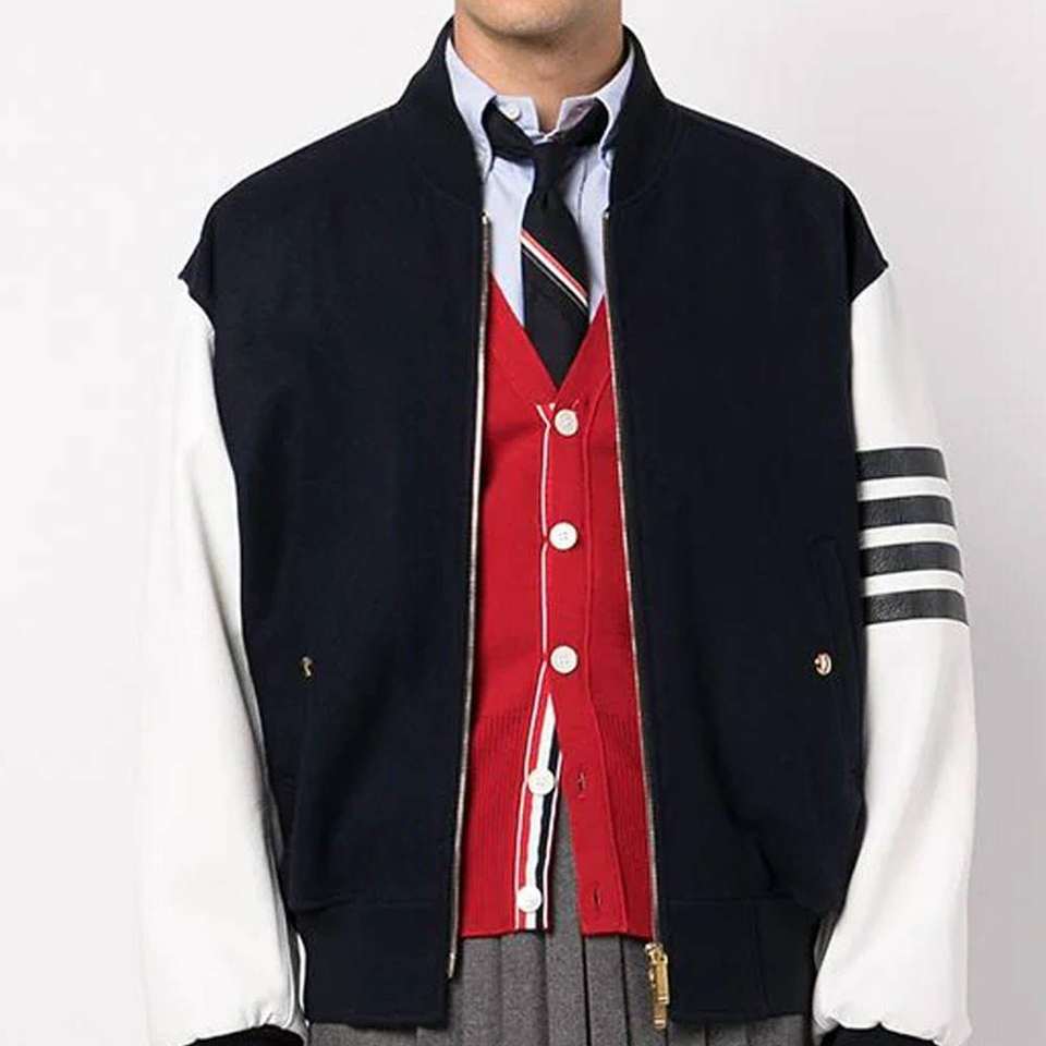 Varsity Jackets Long Sleeve Windproof Quilted with Leather Sleeves Canvas Fabric for Baseball Wholesale