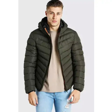 Varsity Style Puffer Jacket Men's Down Bomber Coat with Striped Collar & Cuff Ribbing Streetwear Style Men Puffer Jackets