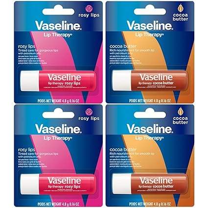 Vaseline Lip Therapy Variety 4 Pack Rosy Lips + Cocoa Butter Moisturizing Lip Balm with Vitamin E, 0.16 Oz Ea