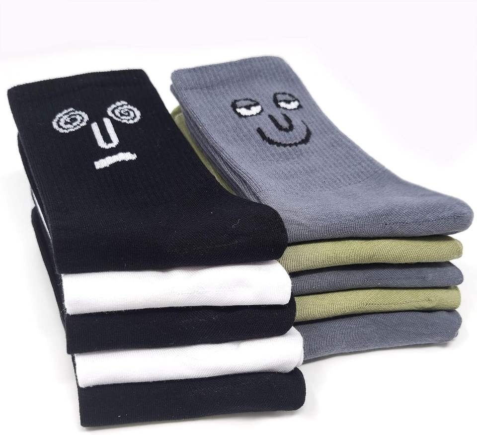 Vaslcare 10-Pack Crazy Funny Emotion Crew Socks Soft Cotton 10 Different Fun Designs Colors Compression Feature for Winter