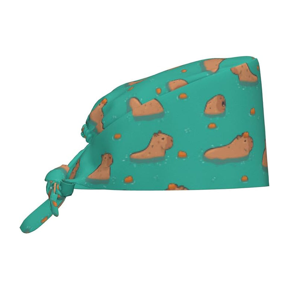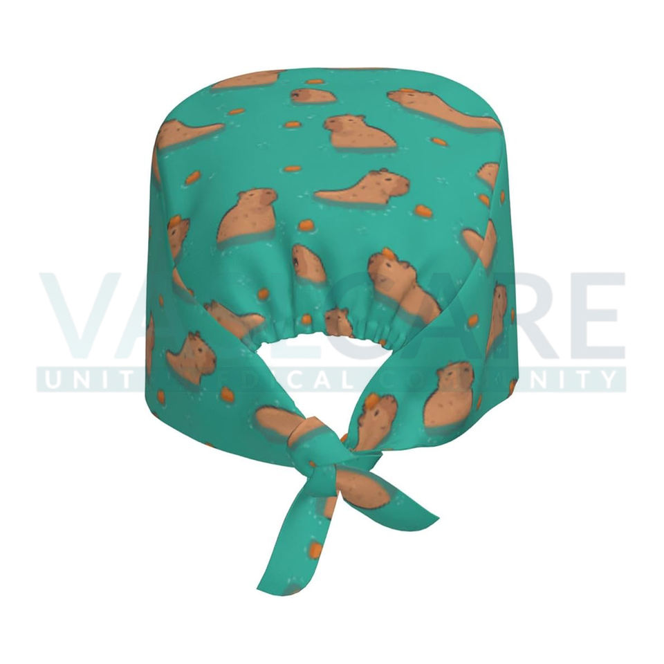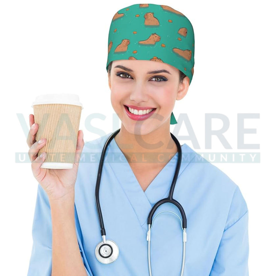 Vaslcare Women's Animal Print Bouffant Scrub Hats Nurses Working Cap with Ponytail Pouch Tie Back Casual Style