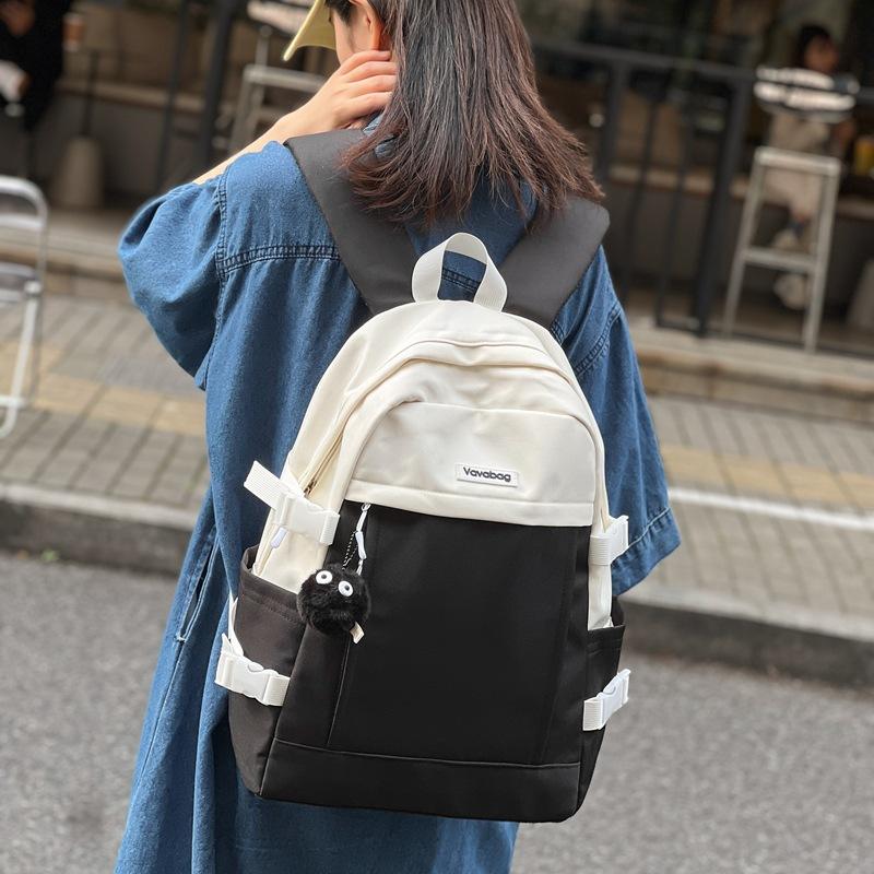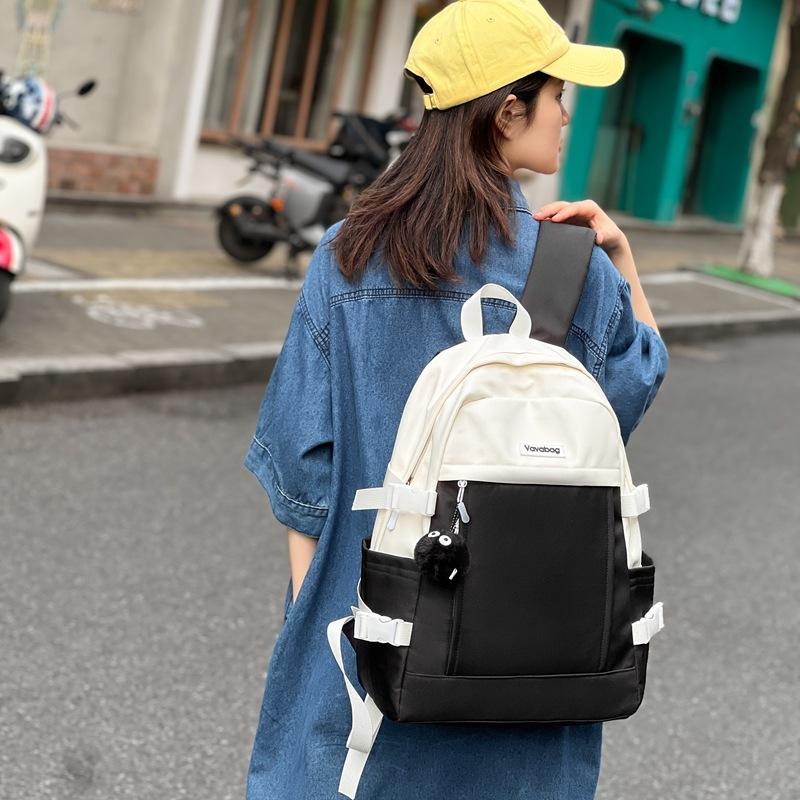 Vavebag Backpack 15 Inches Large Capacity Computer Interlayer Unisex School Education Solid Color Arcuate Shoulder Strap