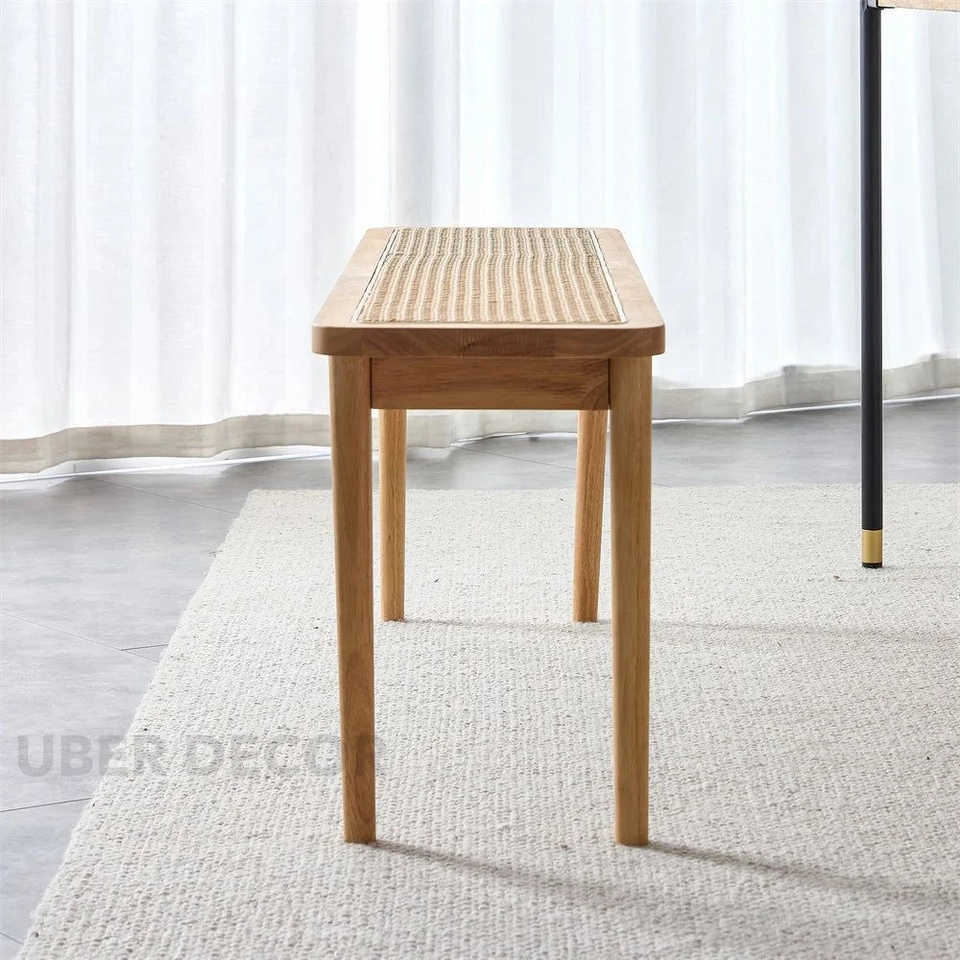 Vedra CaneCraft Mid-Century Indian Inspired Bench Rattan Top Entryway Seating Furniture for Hallway Lounge or Living Room