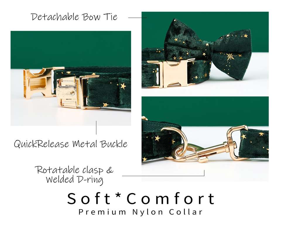 Veet Personalized Bow Tie Leash Set,Pink+Red+Green+Blue Star Collar,Custom Colorful Dog Collar With Name, Pets Christmas Gifts
