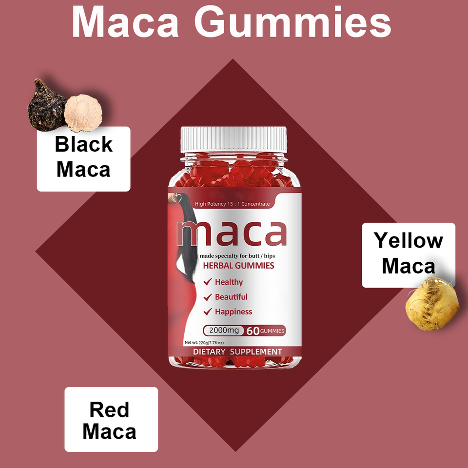 Vegan Maca Fruit Gummies Herbal Supplements for Women to Boost Hip Health Energy Management with Strawberry Flavor for Adults