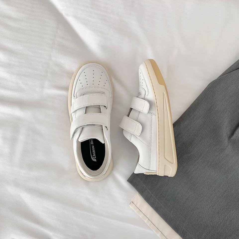 Velcro Thick-soled Height-enhancing Casual Sports White Shoes for Women