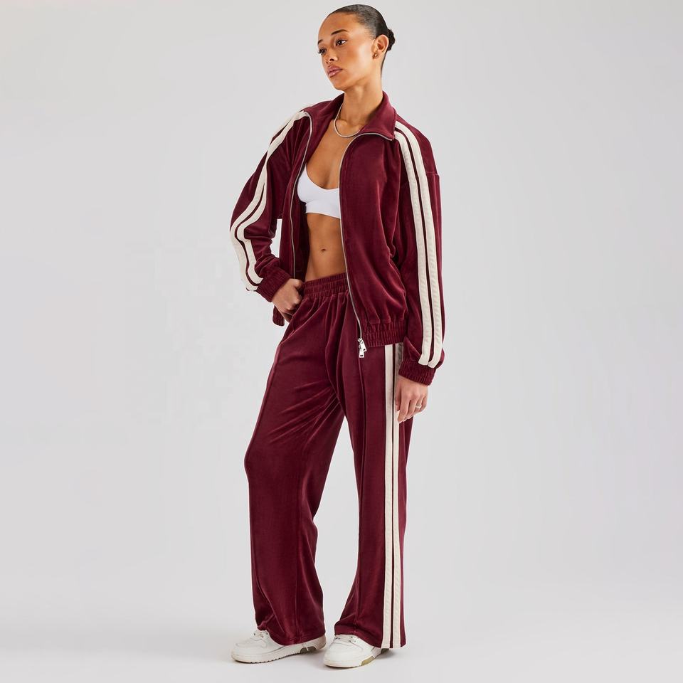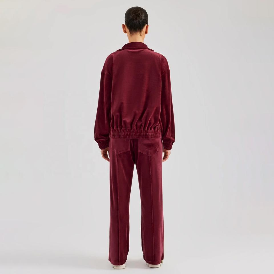 Velour Tracksuit for Women Burgundy High Trending Soft Coziest Relaxed 2 Piece Set