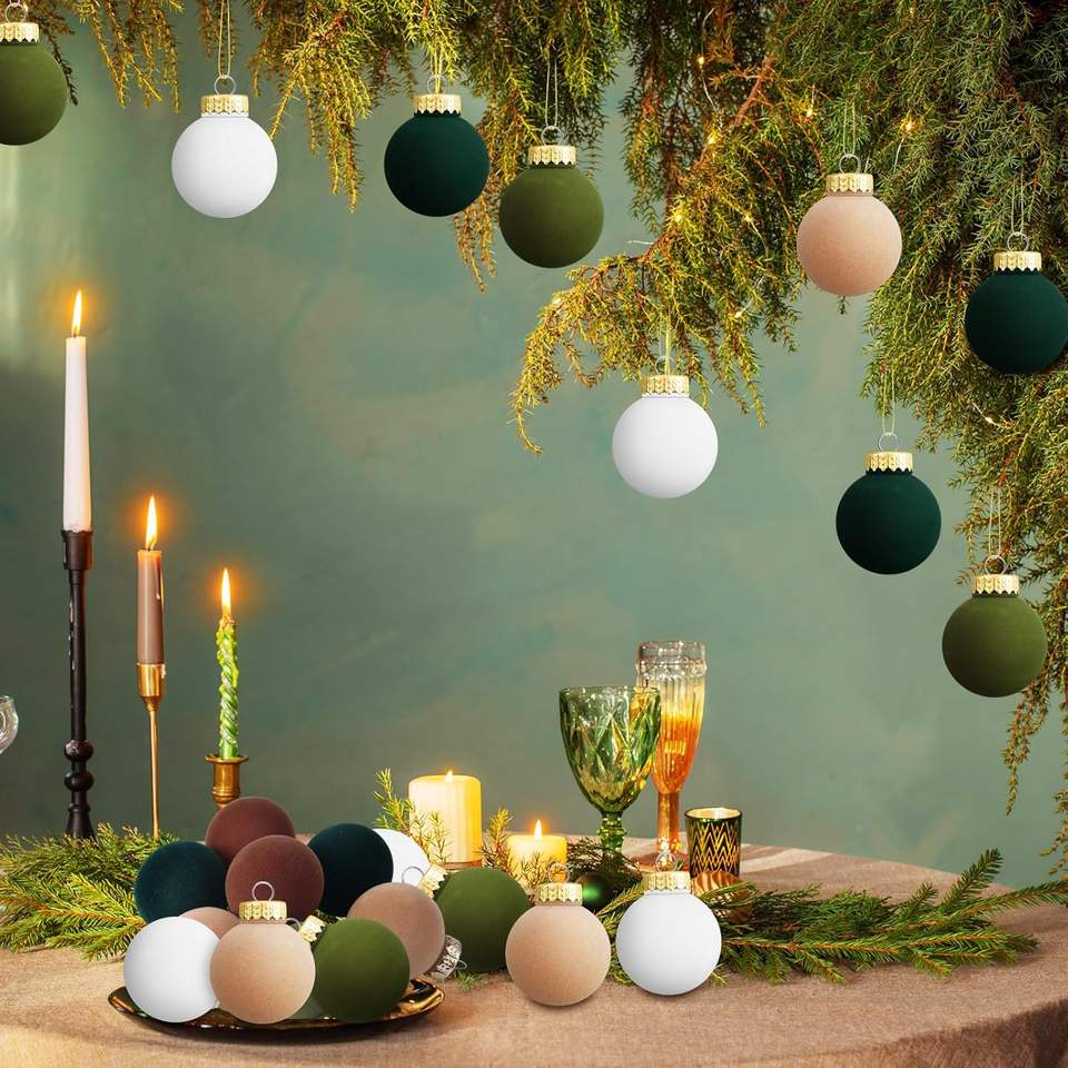 Velvet Christmas Balls Flocked Christmas Tree 8cm Ornaments 9PCS Plastic Balls Xmas Hanging Ornaments