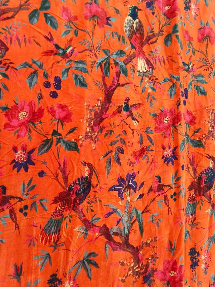 Velvet Coral Orange Bird Print Luxury Boho Curtain Customizable Vintage Style Cotton Drapes for Home Window Decoration