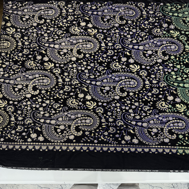 Velvet Embroidery Fabric for Dresses, Abaya, Garments, Upholstery, Home Decor, Tailoring, Craft Projects & Luxury Use