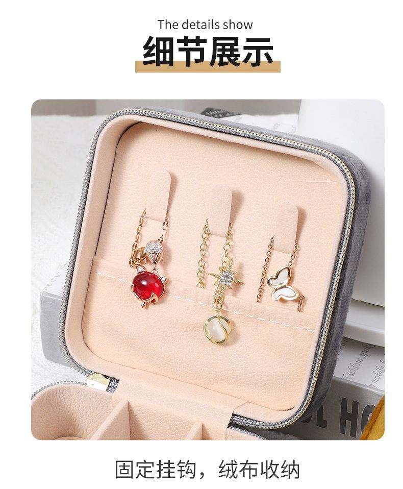 Velvet Jewelry Box Travel Portable Flannel Square Zipper Style Jewellery Storage Case Fashion Gift Holder Ring Earring Holder