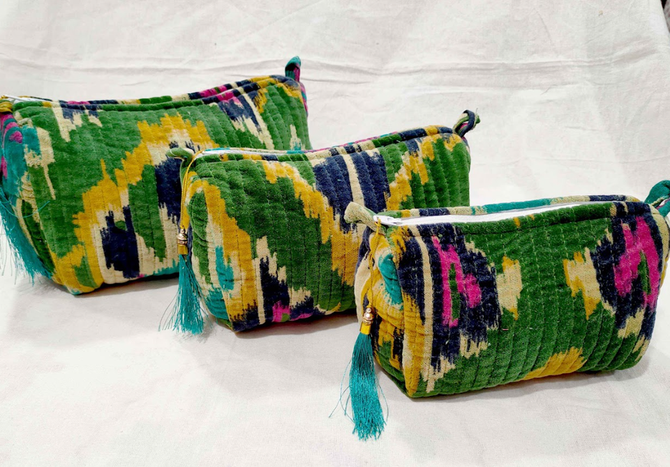 Product name:Women 3 Pc Set Velvet Toiletry Pouch Set