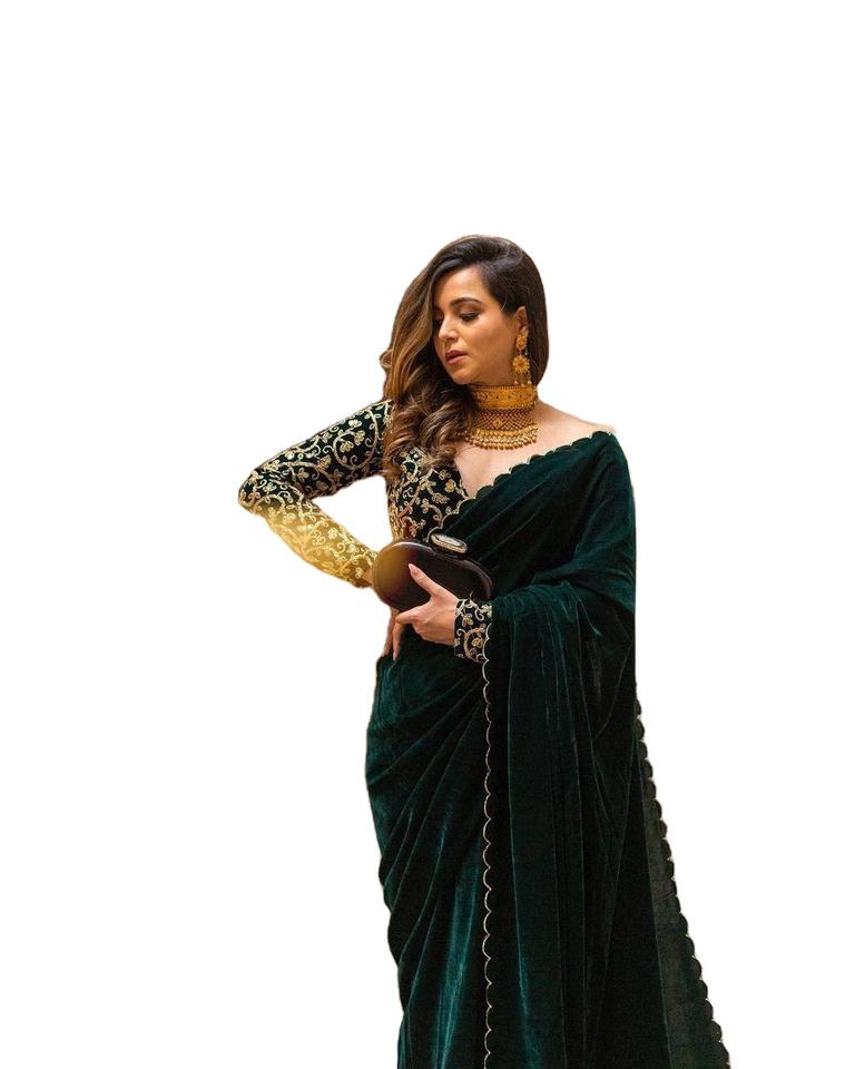 Indian Market Wedding Wear Fancy Velvet Saree With Diamond-Embellished Border Crush Pleated Silk and Net Fabric