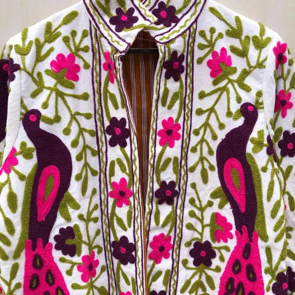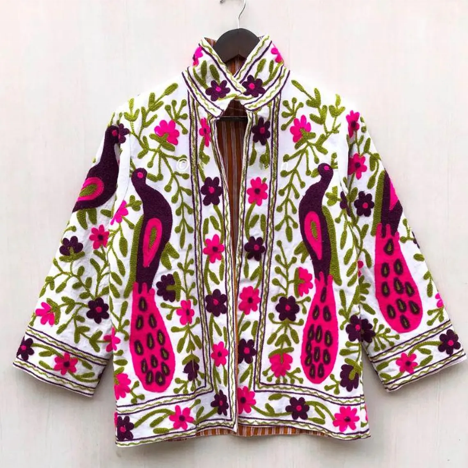 Velvet Suzani Chic Embroidered Short | Peacock Floral Ethnic Outerwear | Uzbek Vintage Style Jacket