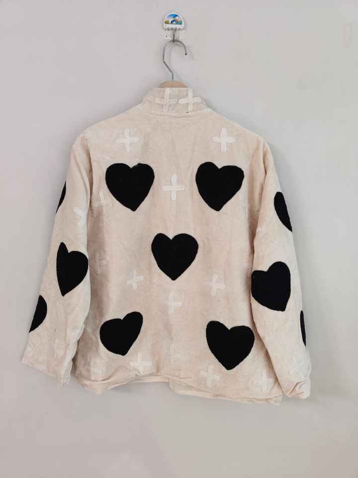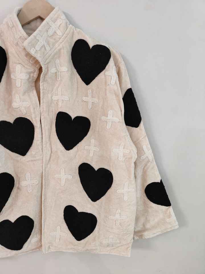 Velvet Suzani Embroidered Boho Bridal Jacket Eco-Friendly Reversible Short Sleeve Black Heart Design