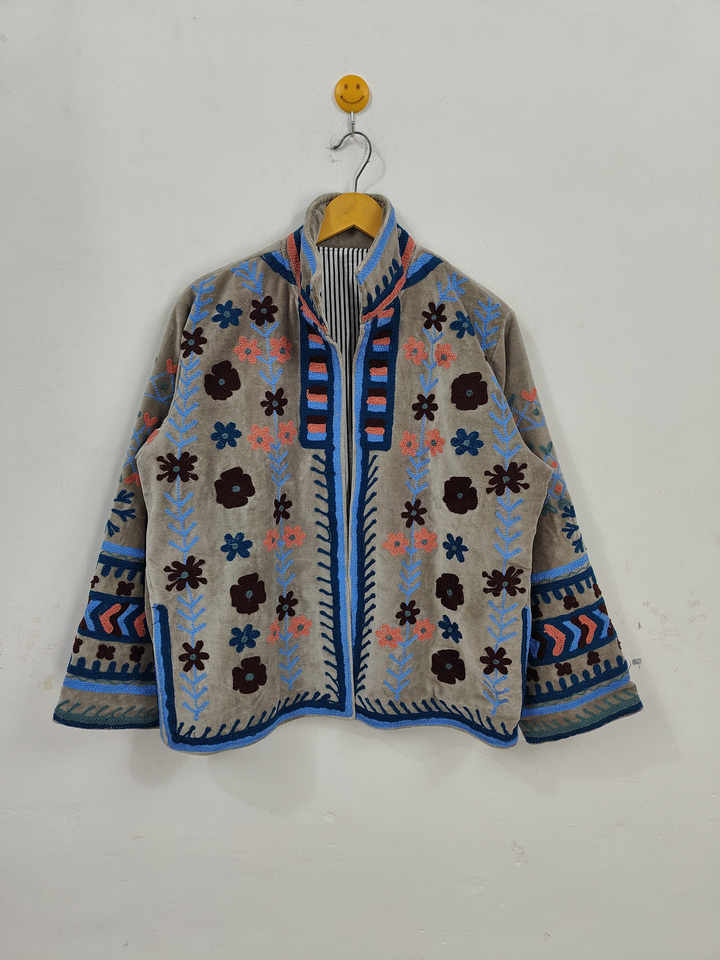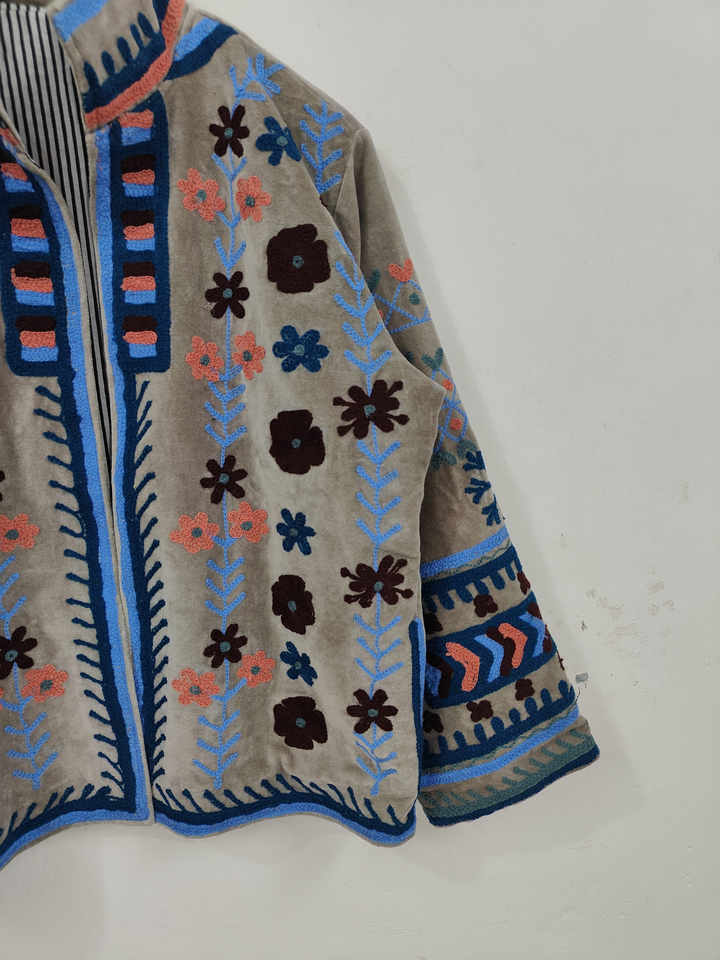 Velvet Suzani Embroidered Jacket Handmade Floral Boho Ethnic Short Coat Festival Wear velvet suzani embroidery jacket