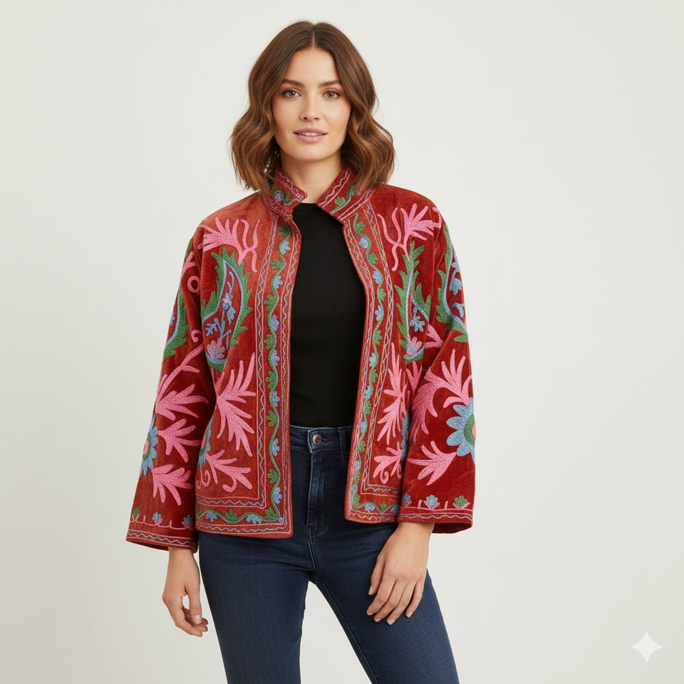 Women Velvet Suzani Embroidery Jacket