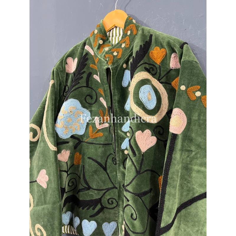 Velvet Suzani Fabric Jacket Coat Unisex Winter Coat Floral Embroidery Jacket With Inside Cotton Lining Women's Party Wear Coat