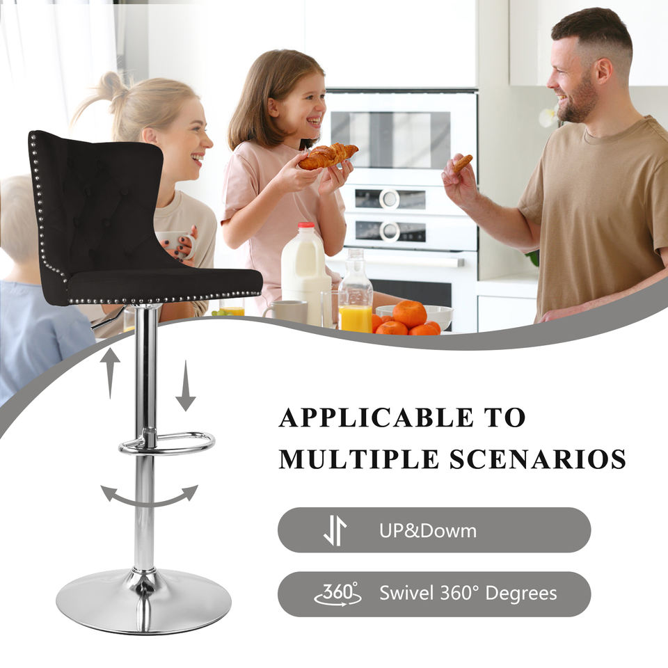 Velvet Swivel Bar Stools Modern High Back Metal Footrest Adjustable Swivel for Hotel Dining Outdoor Commercial Use