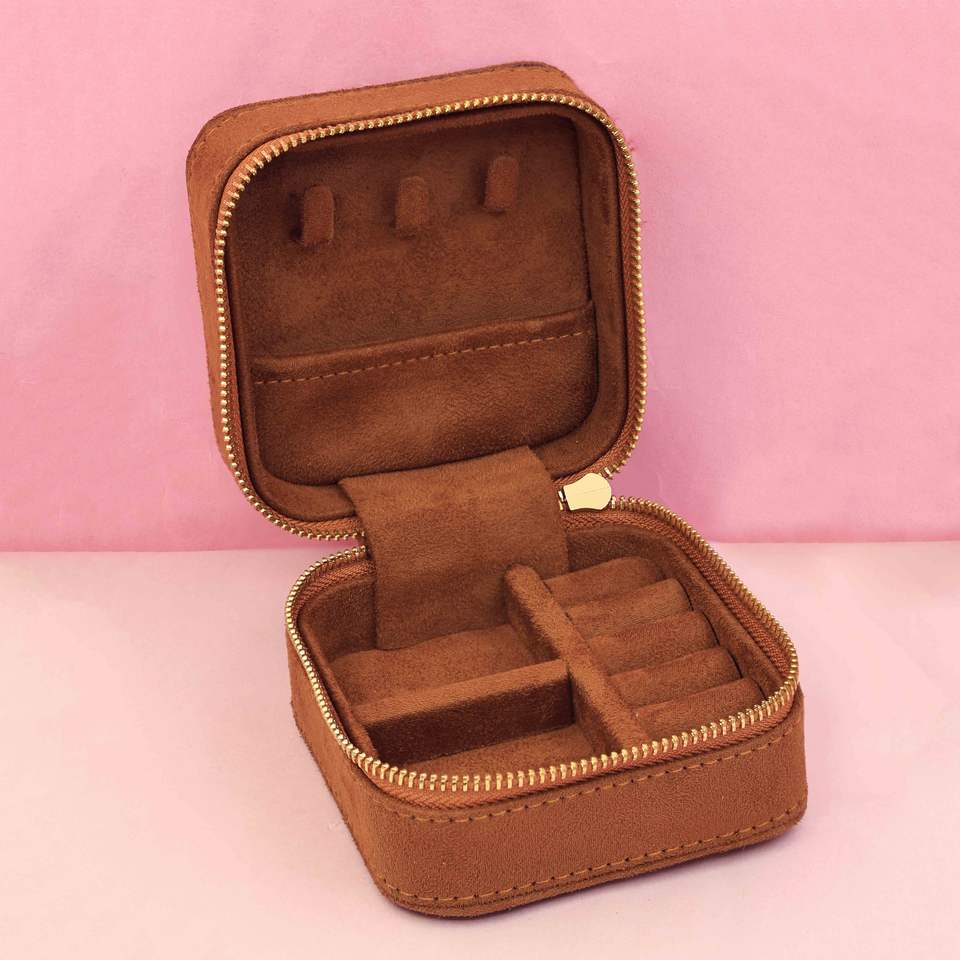 Velvet Travel Jewelry Box, Brown Suede Jewelry Box, Portable Jewelry Case, Customizable Jewelry Box, Small Jewelry Box Organizer