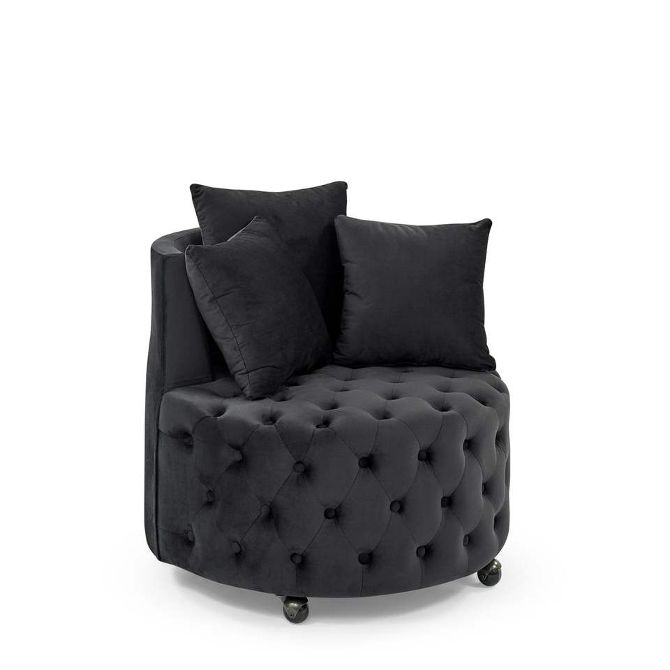 Velvet Upholstered Swivel Chair with Button Tufted Design and Movable Wheels Living Room Chair Set Including 3 Black Pillows