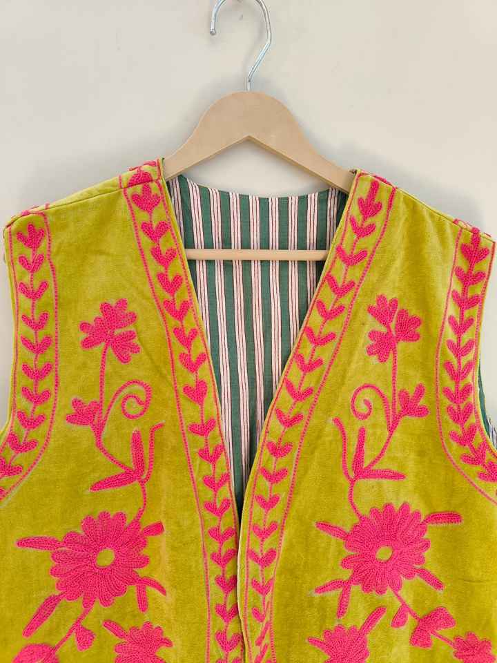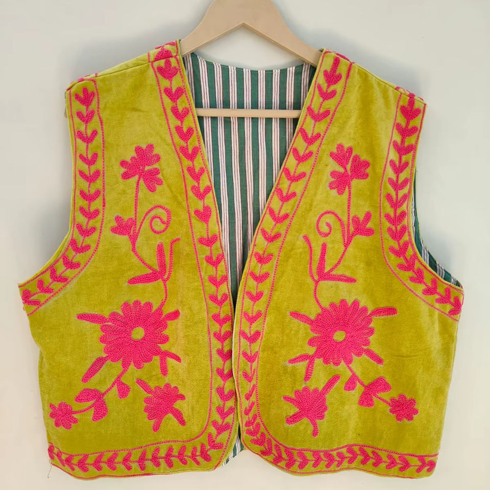 Velvet Vest Hand embroidery Velvet Vest Handmade Waist Coat Jacket Hand EmbroideredSuzani Velvet Vest BohoFloral VelvetWaistcoat