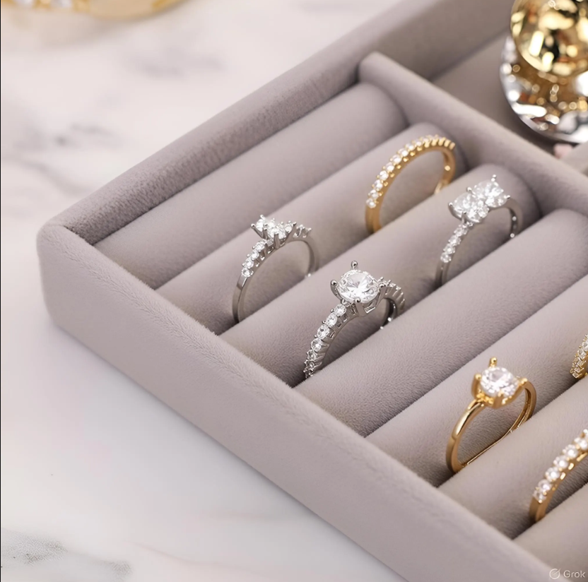 Velvet Wood Jewelry Tray Organizer Drawer Stackable Ring Earring Storage Grey Jewelry Display Insert Vanity Organization