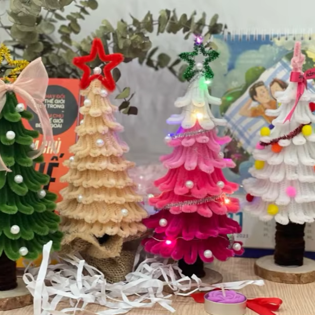 Velvet Wrapped Wire Holiday Ornament with Wooden Base Decorative Hanging Accent for Christmas Tree Vietnam