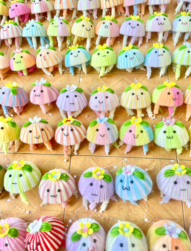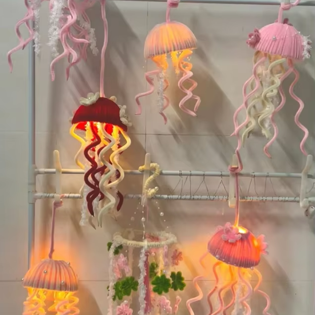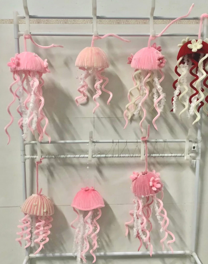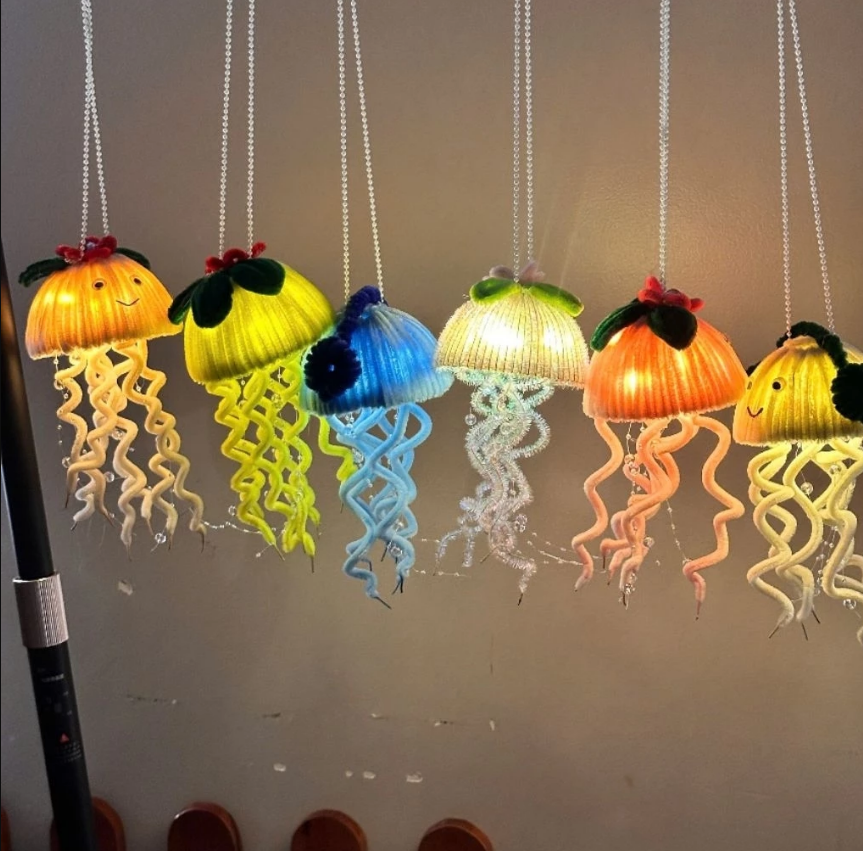 Velvet Wrapped Wire Jelly Fish Shaped Lantern Factory Direct Creative Festival Hanging Decoration Handmade Vietnam