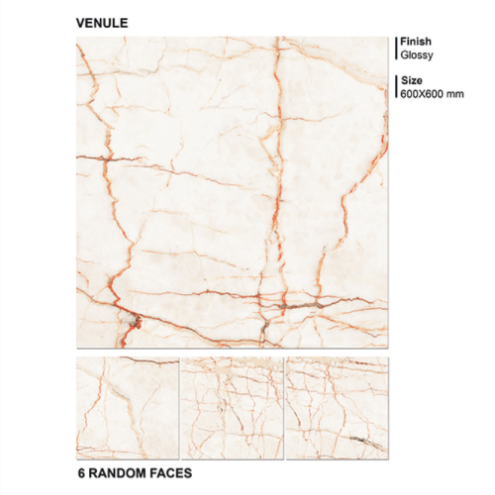Venule 600x600mm Polished Glazed Vitrified Porcelain European Glossy Finish Antibacterial Wall Floor Tiles for Office Building